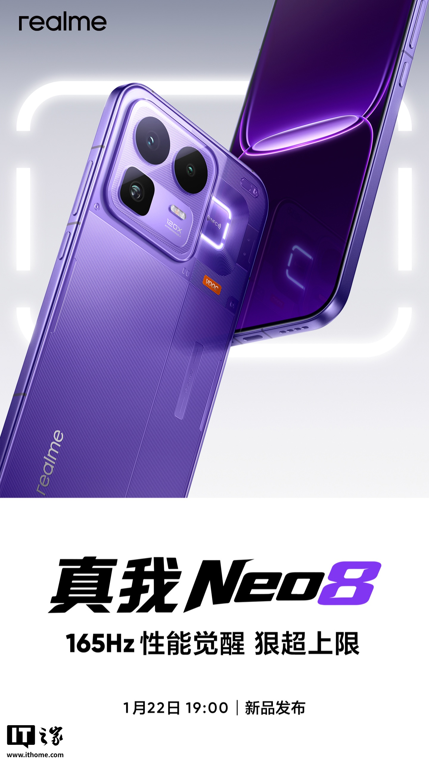 综合IT之家此前报道内容来看,真N掌机账号realme 真我 Neo 8 手机将于 1 月 22 日晚 19:00 正式发布,手机主要配置如下: